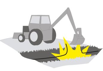 Повреждение кабеля при проведении несанкционированных земельных и буровых работ.