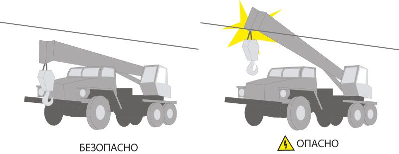 Электроопасность при проведении сельскохозяйственных работ на машине с грузоподъемными приспособлениями. При выполнении строительных работ вблизи воздушных линий электропередачи на металлических корпусах машин и механизмов могут наводиться и появляться опасные электрические потенциалы.