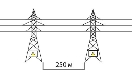 | Напряжение, кВ | Расстояние, м |